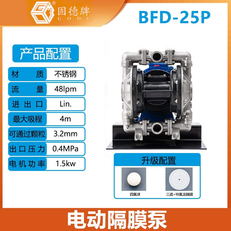 固德牌电动隔膜泵BFD-25P不锈钢304不锈钢系列自吸无堵塞隔膜水泵