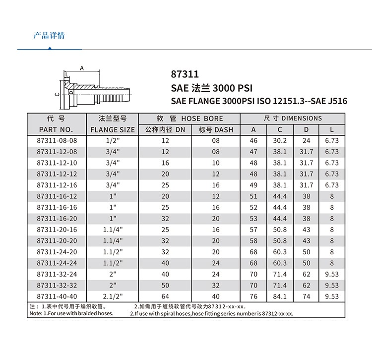 依得力液压软管接头SAE法兰式轻系列SAE法兰3000 PSI