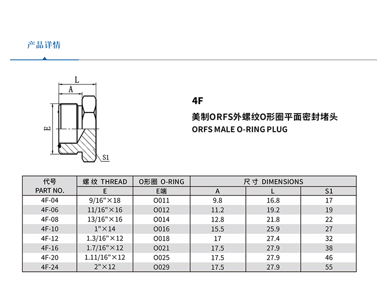 依得力液压过渡接头美制螺纹O形圈平面密封ORFS接头美制ORFS外螺纹0形圈平面密封堵头