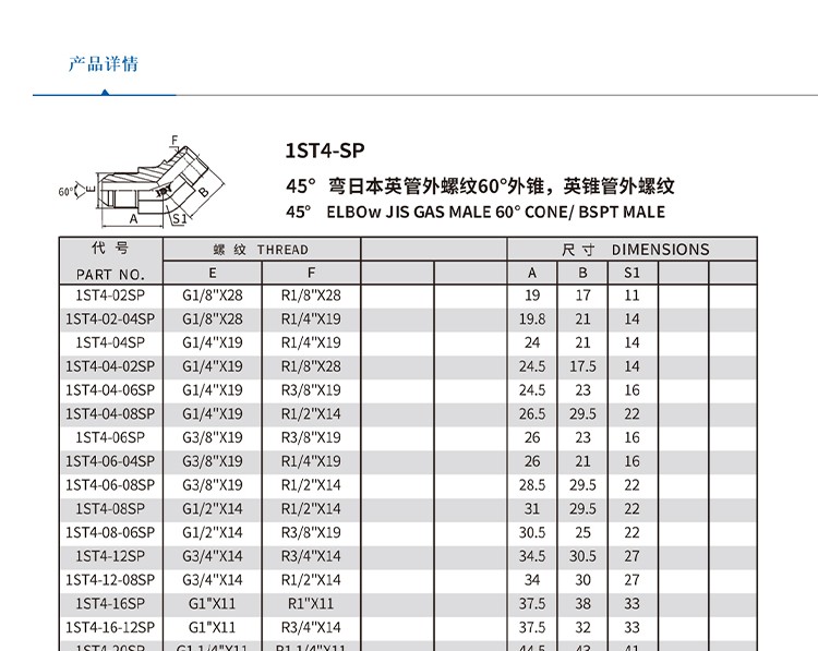依得力液压过渡接头日本英管螺纹60° 锥面密封接头45°弯日本英管外螺纹60°外锥英锥管外螺纹