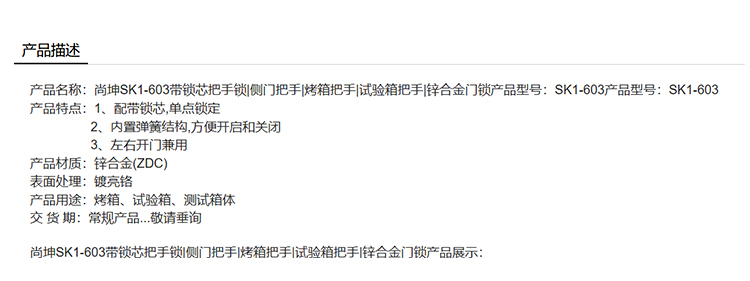 尚坤SK1-603带锁芯把手锁侧门把手烤箱把手试验箱把手锌合金门锁