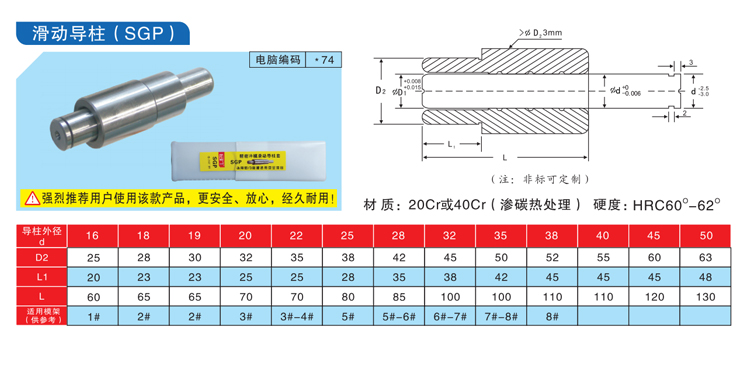 冲压五金模具精密滑动导柱导套SGP外导柱组件