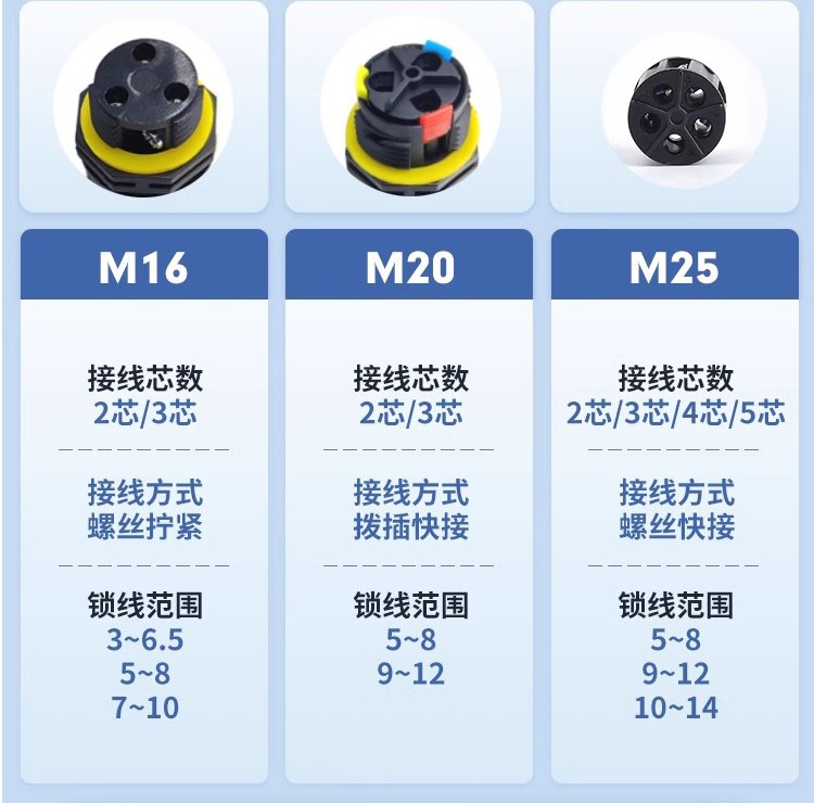 商品型号 迷你M25-2芯(5-8mm螺丝接线)