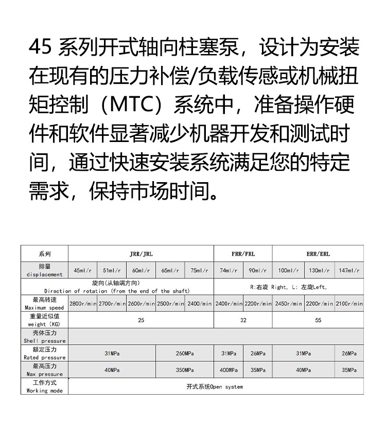 品信液压柱塞泵马达系列45 系列开式泵