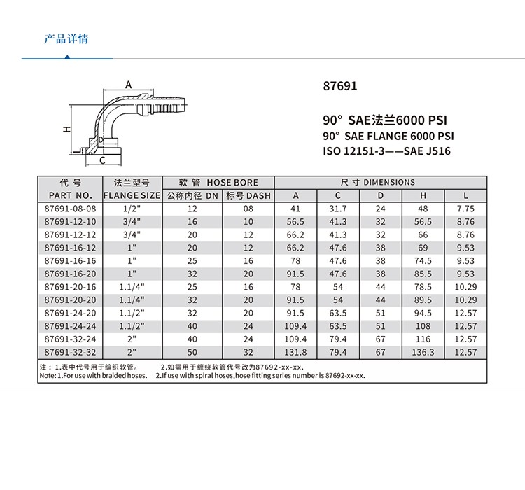 依得力液压软管接头SAE法兰式重系列90° SAE 法兰 6000 PSI