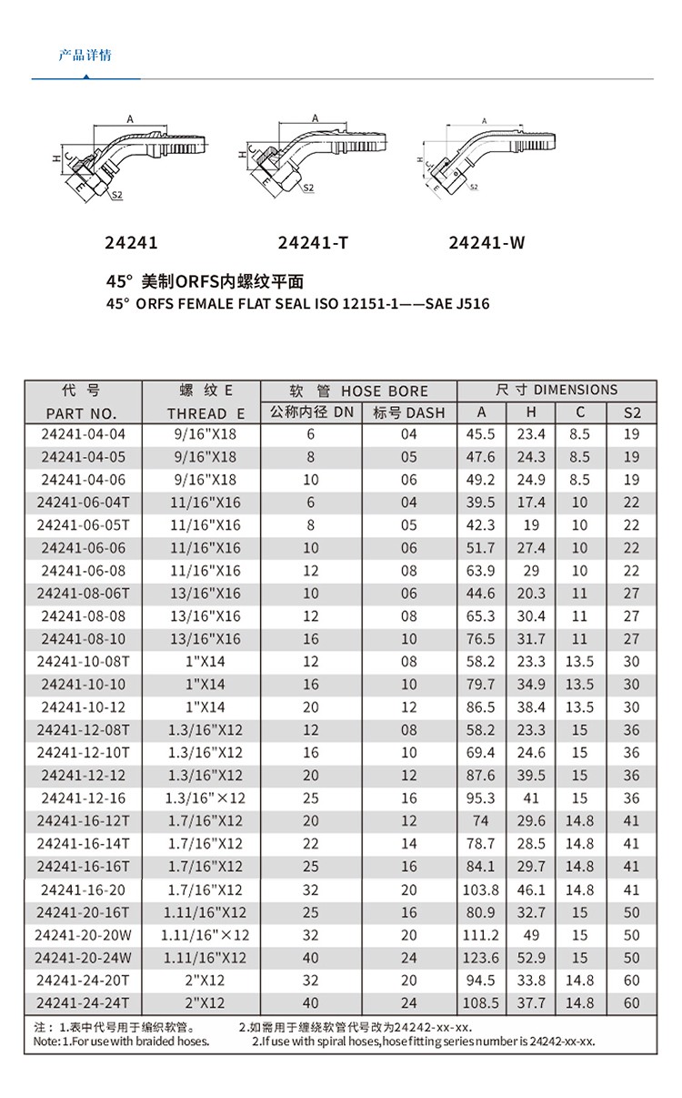 依得力液压软管接头美制ORFS螺纹平面密封45°美制ORFS内螺纹平面