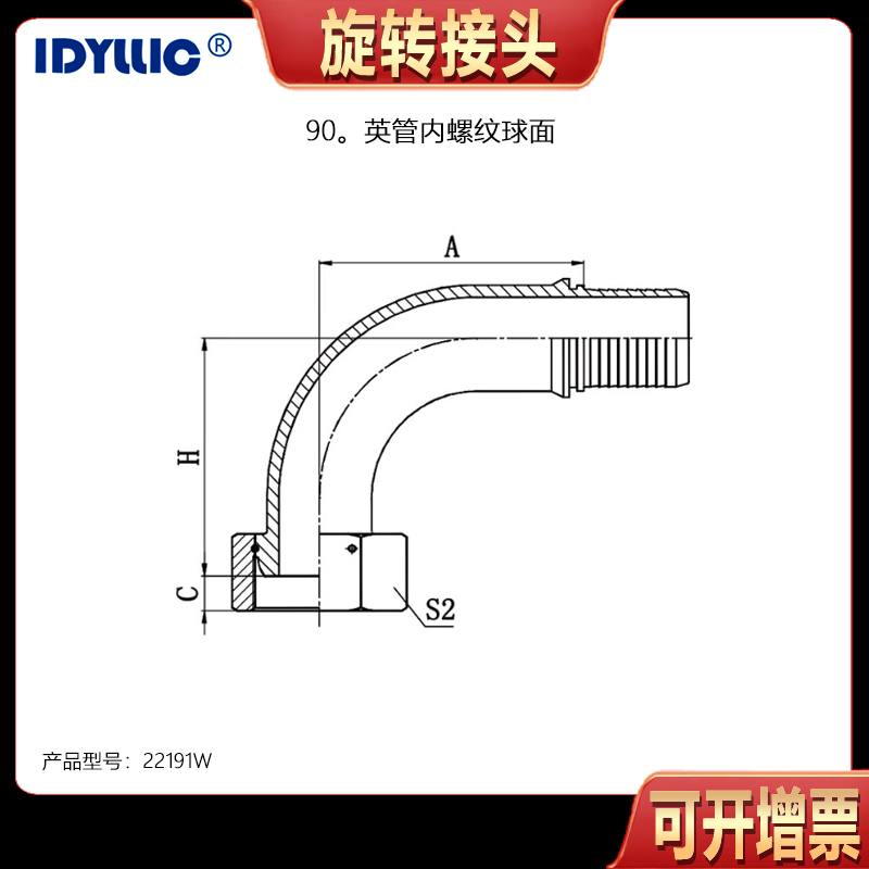 依得力液压软管接头英管螺纹球面密封90。英管内螺纹球面