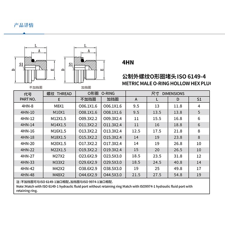 依得力液压过渡接头堵头公制外螺纹轻系列堵头ISO 6149-3