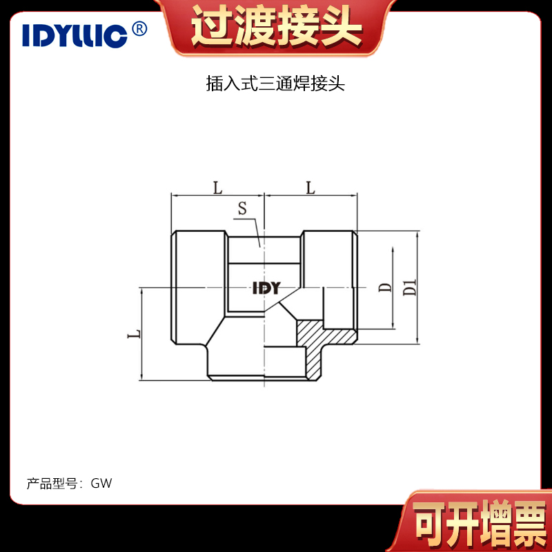 依得力液压过渡接头公制螺纹O形圈平面密封接头插入式三通焊接头