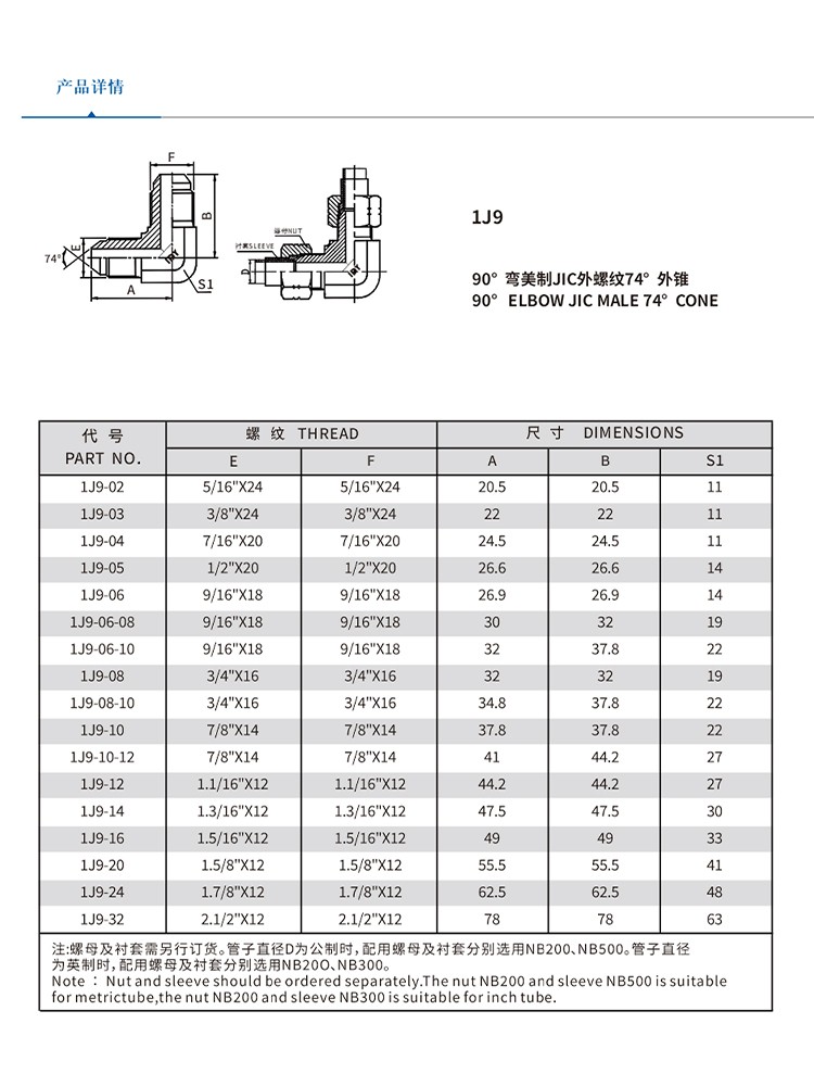 依得力液压过渡接头美制螺纹74° 锥面扩口接头45°弯美制JIC外螺纹74°外锥