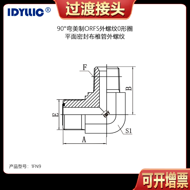 依得力液压过渡接头美制螺纹O形圈平面密封ORFS接头90°弯美制ORFS外螺纹0形圈平面密封布椎管外螺纹