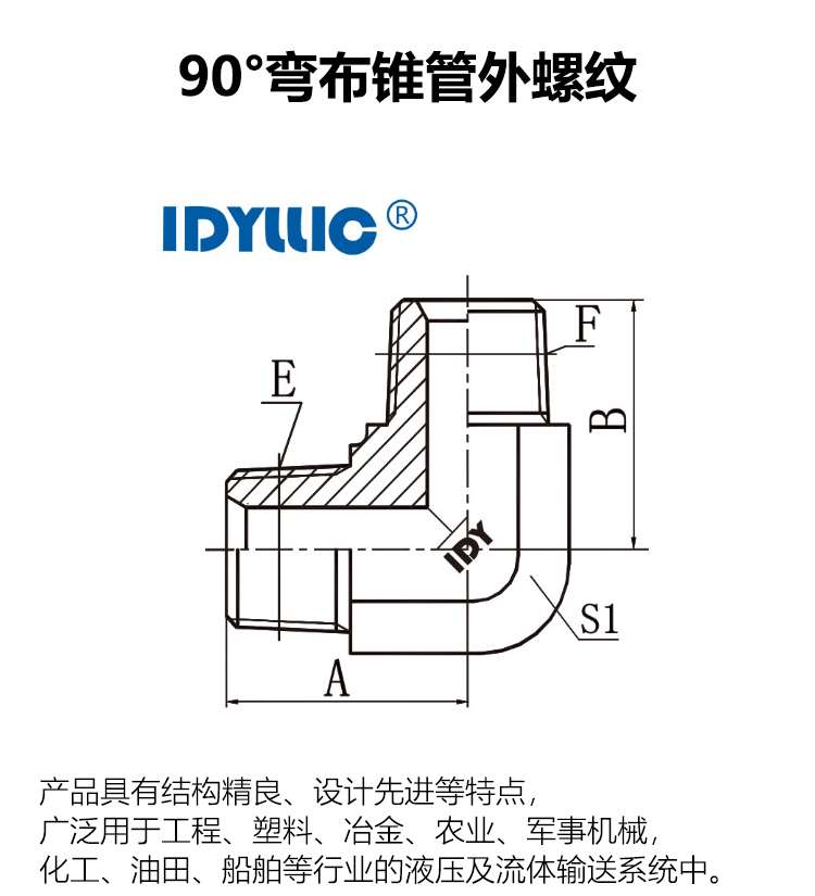 依得力液压过渡接头美制锥管螺纹NPT接头美制锥管螺纹NPT接头90°弯布锥管外螺纹