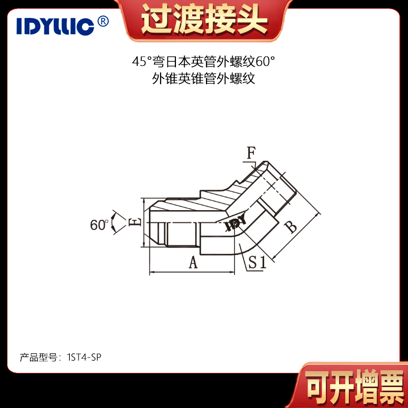 依得力液压过渡接头日本英管螺纹60° 锥面密封接头45°弯日本英管外螺纹60°外锥英锥管外螺纹