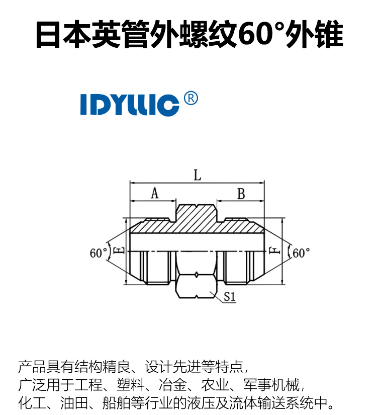 依得力液压过渡接头日本英管螺纹60° 锥面密封接头日本英管外螺纹60°外锥