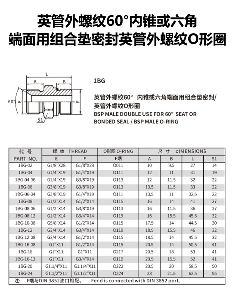 依得力液压过渡接头英管螺纹60° 锥面密封接头英管外螺纹60°内锥或六角端面用组合垫密封英管外螺纹O形圈