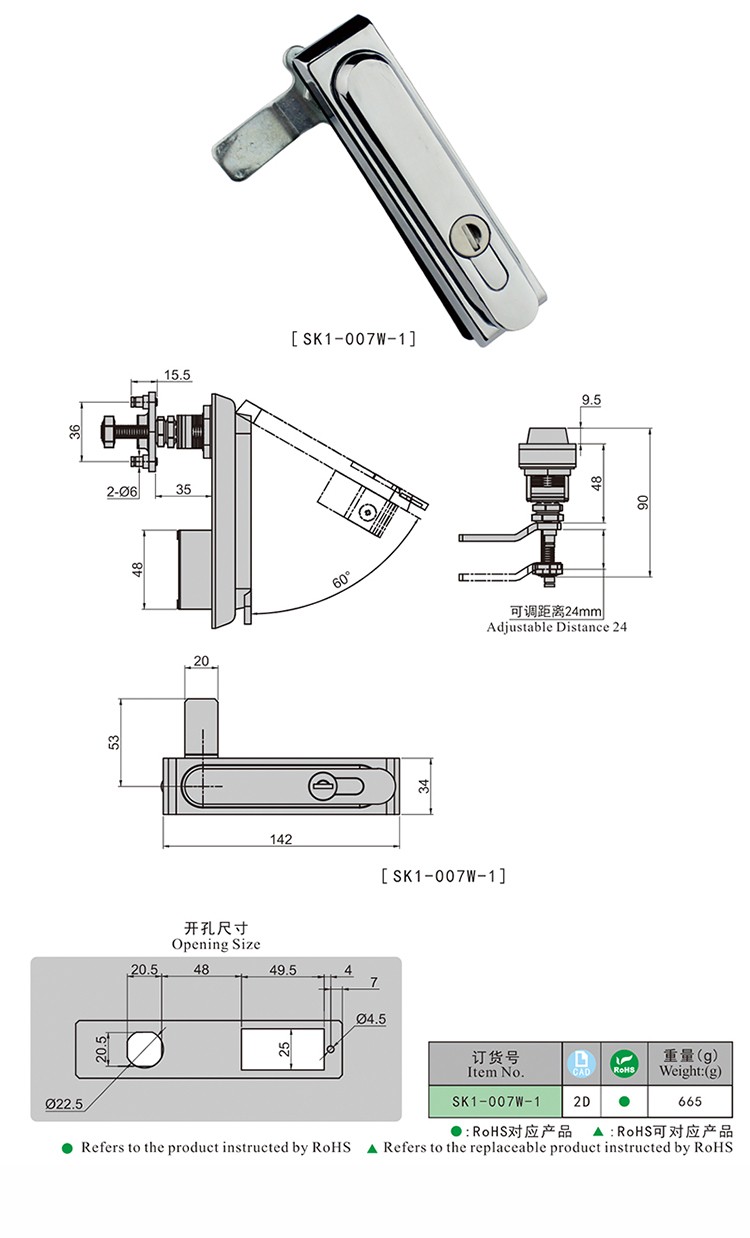 尚坤SK1-007W-1锌合金机柜锁连杆天地锁防尘机柜锁防水平面手柄平面三点锁