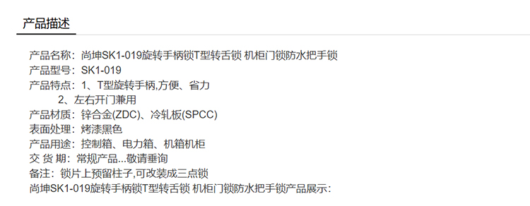 尚坤SK1-019旋转手柄锁把手转舌锁T型把手锁防水把手锁机柜门锁