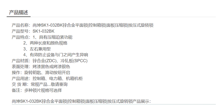 尚坤SK1-032BK锌合金平面锁控制箱锁面板压缩锁按压式旋转锁