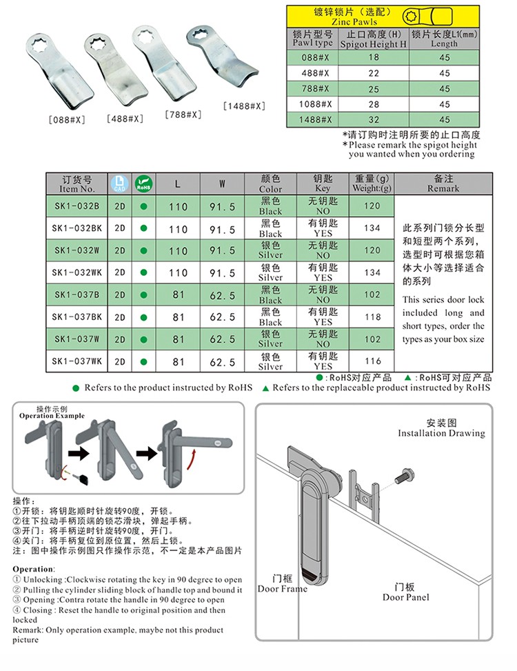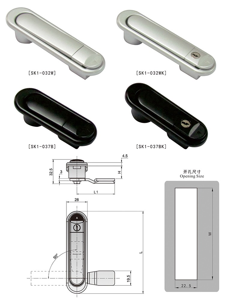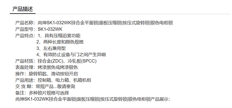 尚坤SK1-032WK锌合金平面锁面板压缩锁按压式旋转锁银色电柜锁