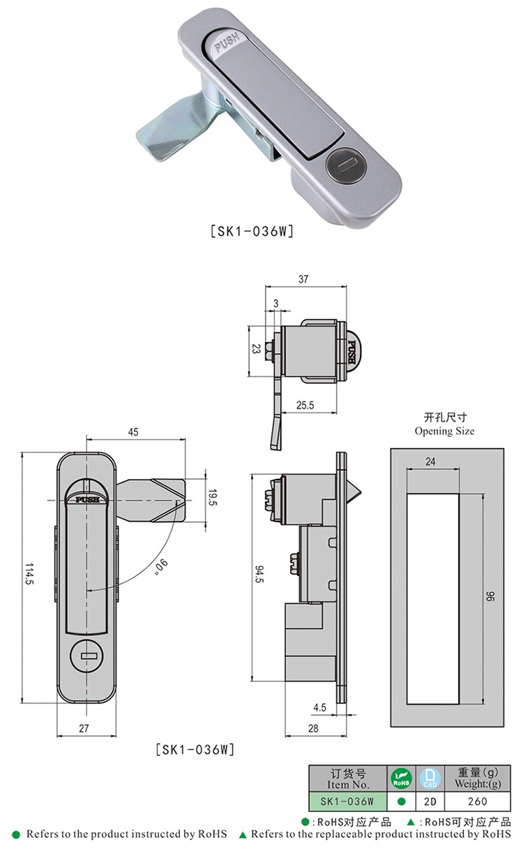 尚坤SK1-037WK机箱机柜控制箱锁面板压缩锁按压式旋转锁
