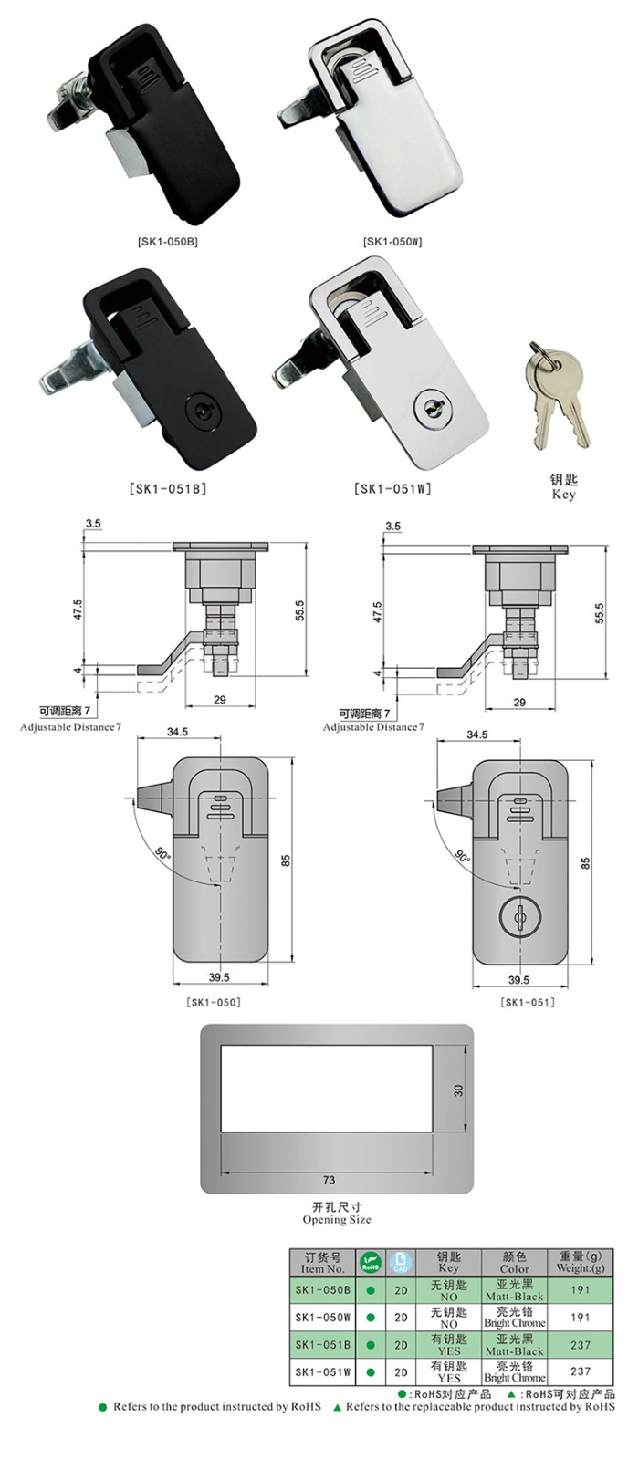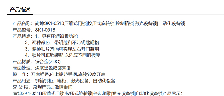 尚坤SK1-051B压缩式门锁按压式旋转锁工业控制箱锁激光设备锁自动化设备锁