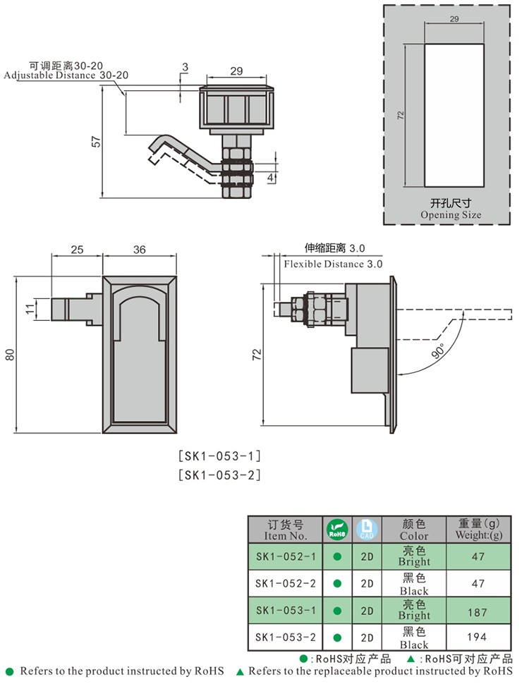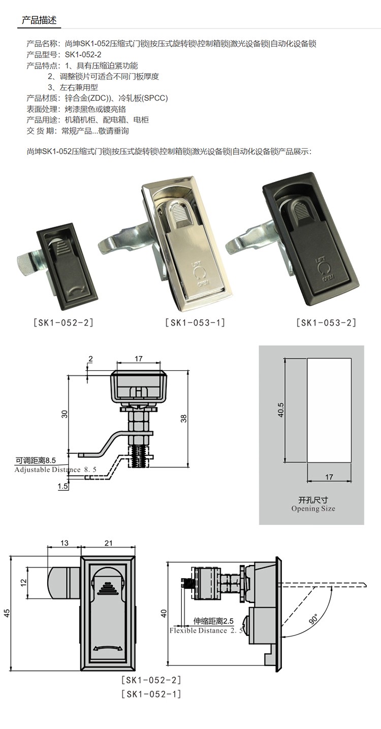 尚坤SK1-052-2压缩式门锁按压式旋转锁控制箱锁激光设备锁自动化设备锁