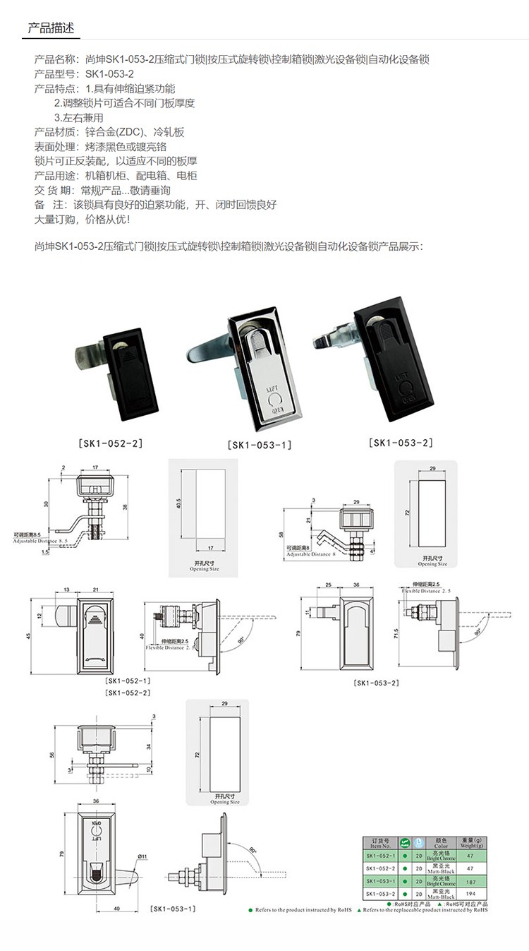 尚坤SK1-053-1机箱机柜锁自动化设备锁压缩式门锁按压式旋转锁控制箱锁