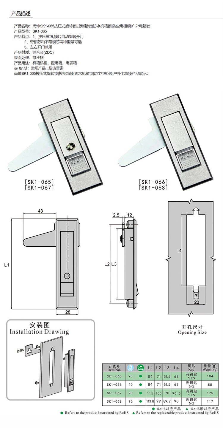 尚坤SK1-065按压式旋转锁控制箱锁防水机箱锁防尘电柜锁户外电箱锁
