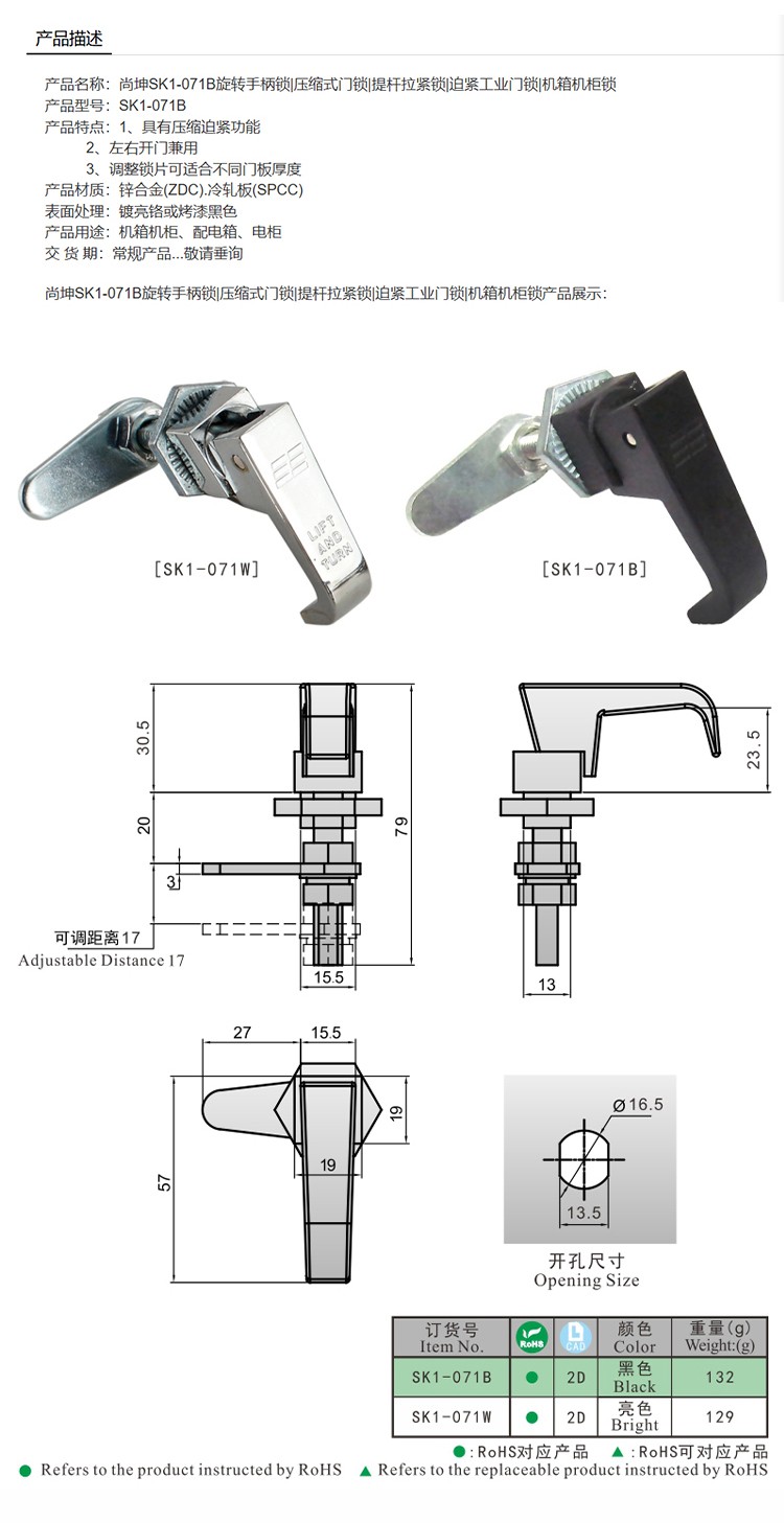 尚坤SK1-071B旋转手柄锁压缩式门锁提杆拉紧锁迫紧工业门锁机箱机柜锁