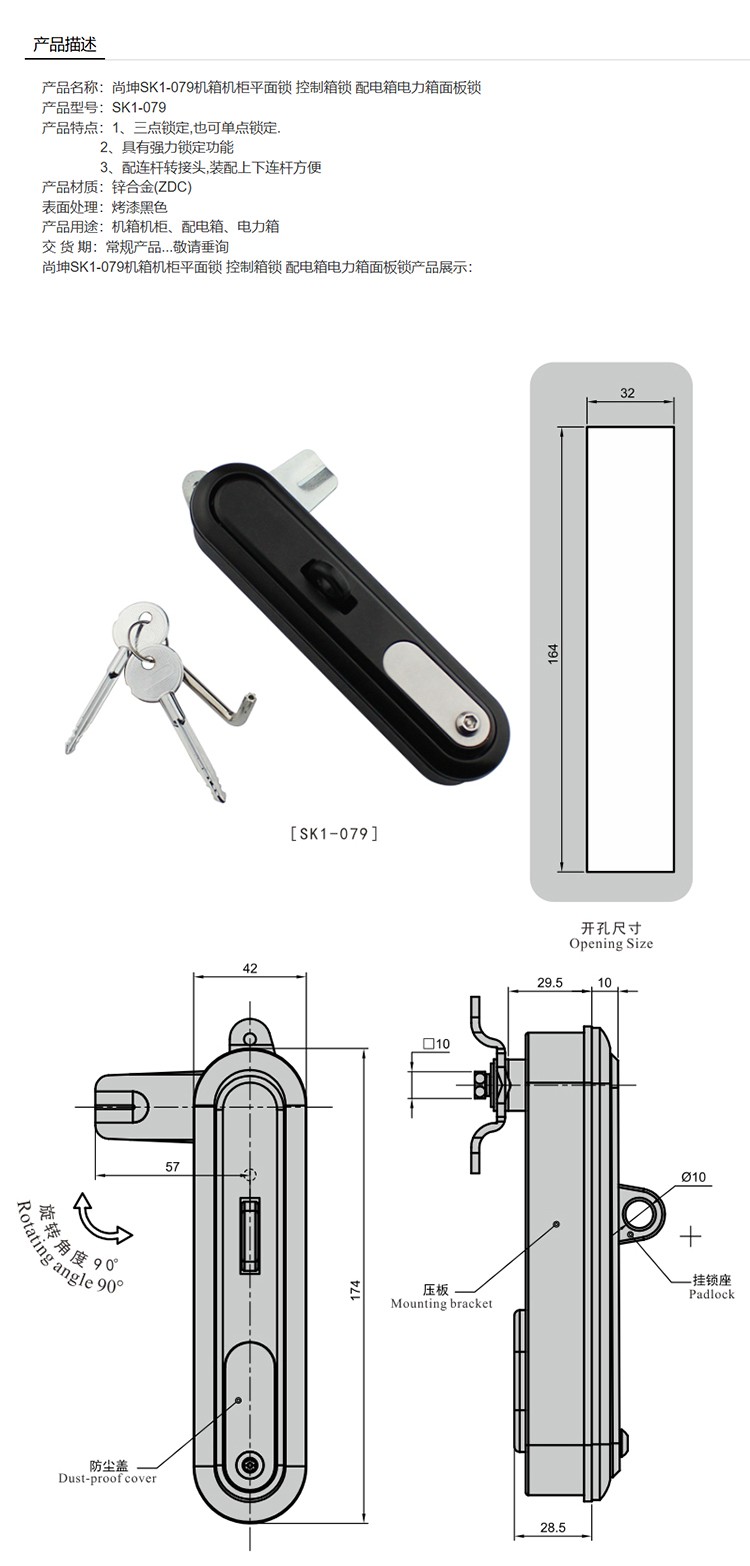 尚坤SK1-079机箱机柜平面锁 控制箱锁 配电箱电力箱面板锁