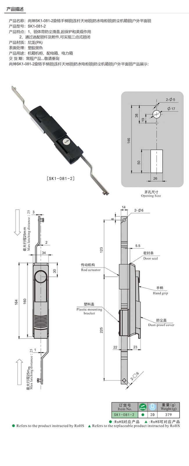尚坤SK1-081-2旋转手柄锁连杆天地锁防水电柜锁防尘机箱锁户外平面锁
