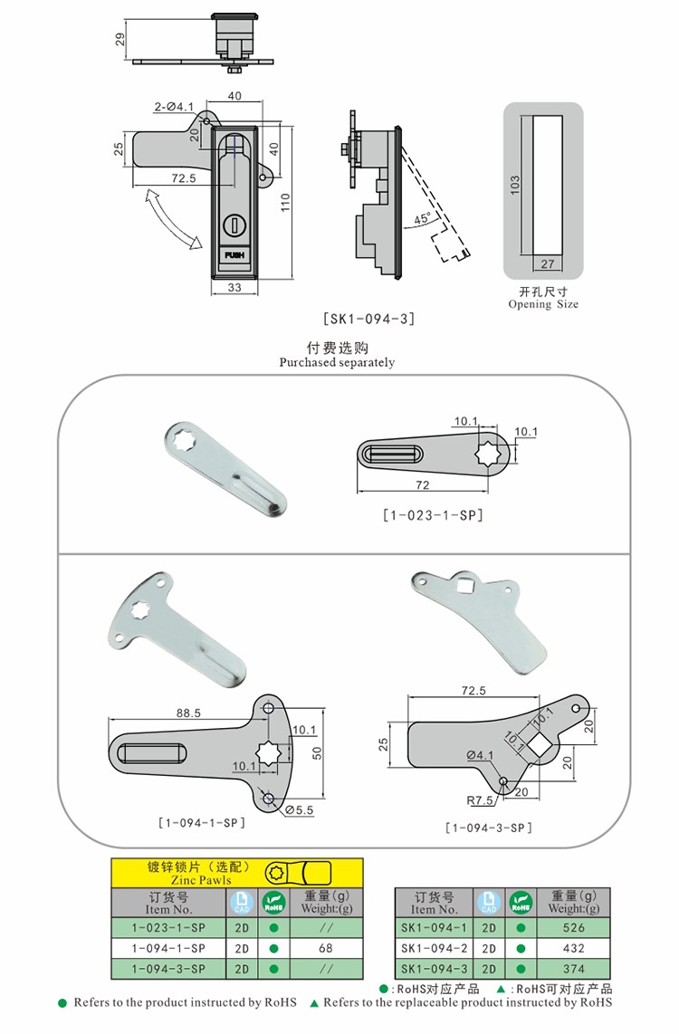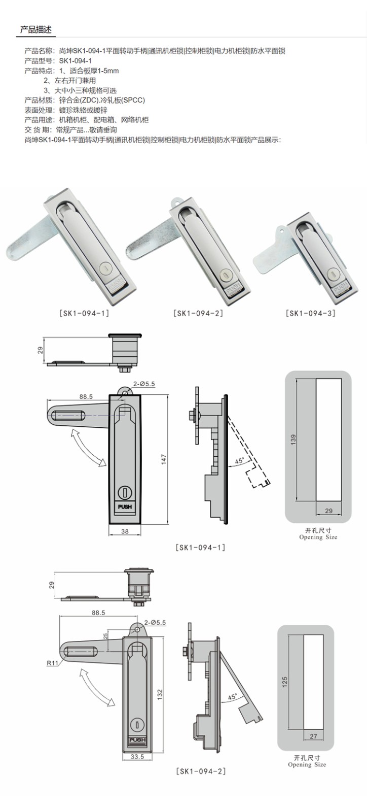 尚坤SK1-094-1平面转动手柄通讯机柜锁控制柜锁电力机柜锁防水平面锁