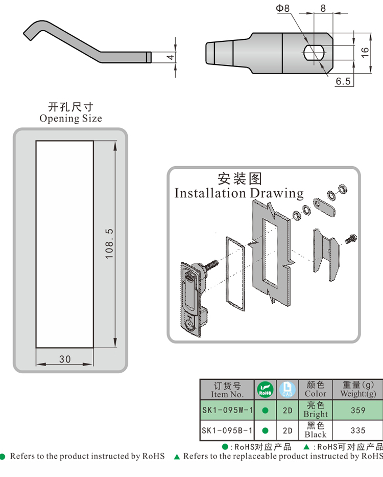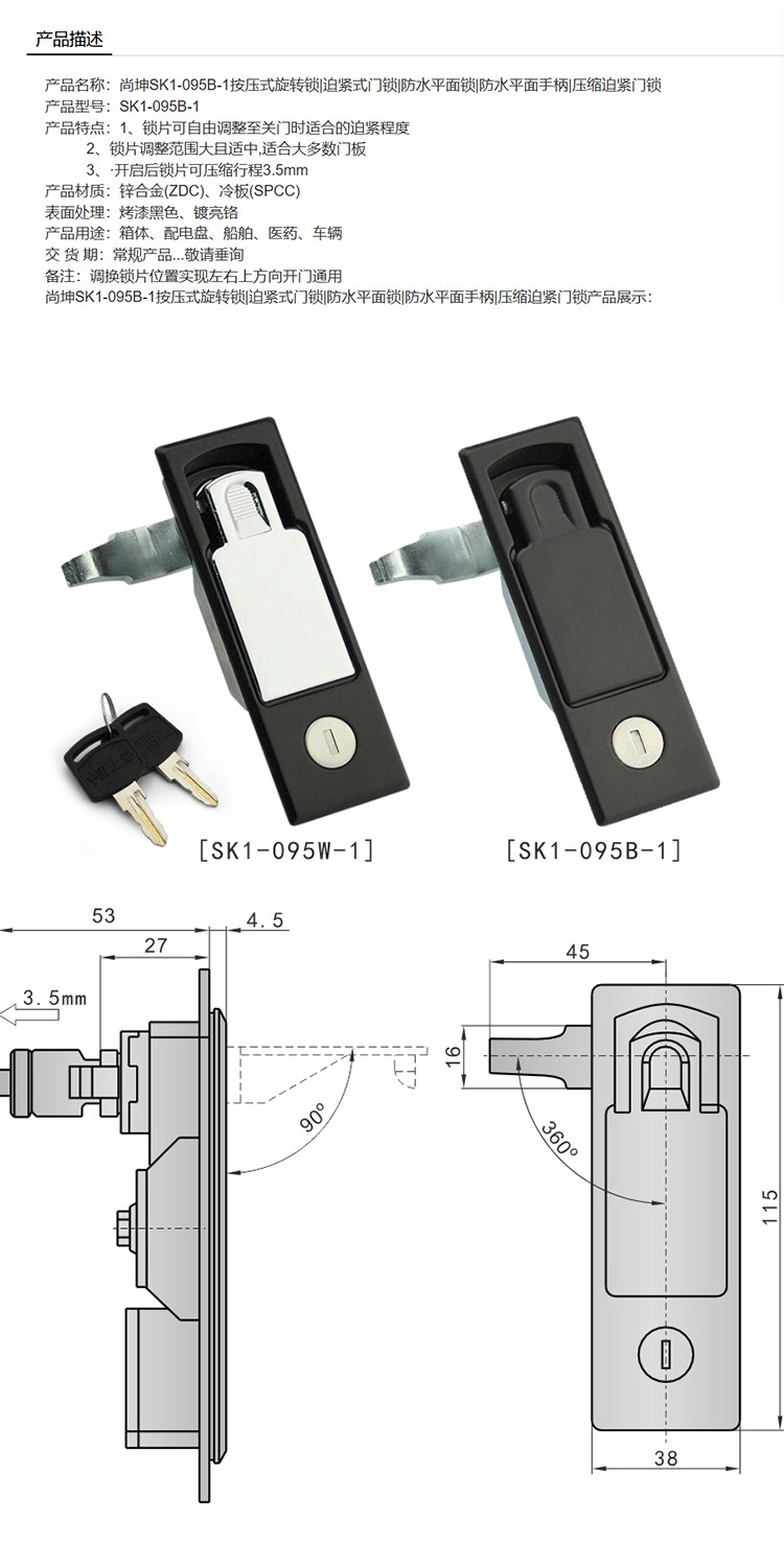 尚坤SK1-095B-1按压式旋转锁迫紧式门锁防水平面锁防水平面手柄压缩迫紧门锁