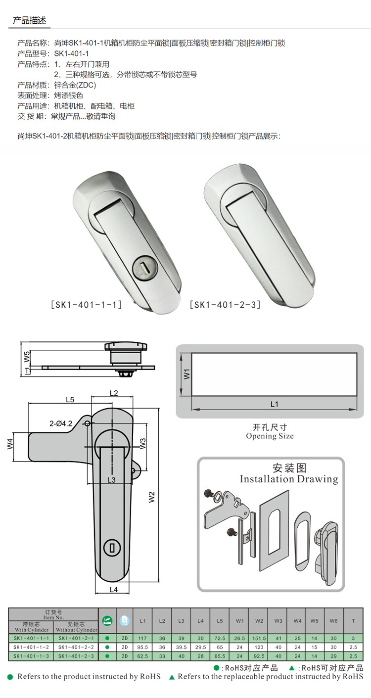 尚坤SK1-401-1机箱机柜防尘平面锁面板压缩锁密封箱门锁控制柜门锁