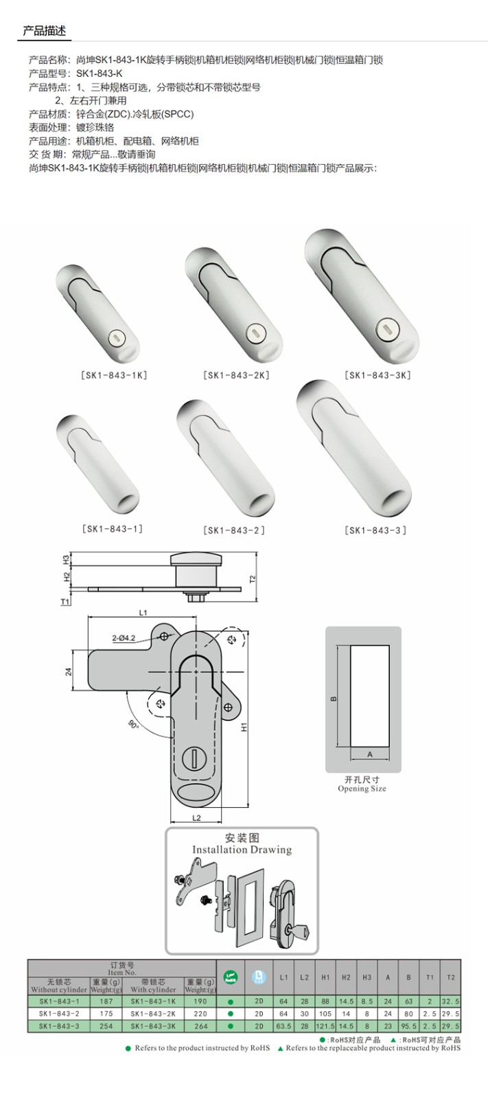 尚坤SK1-843-1K旋转手柄锁机箱机柜锁网络机柜锁机械门锁恒温箱门锁