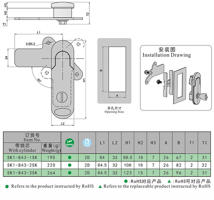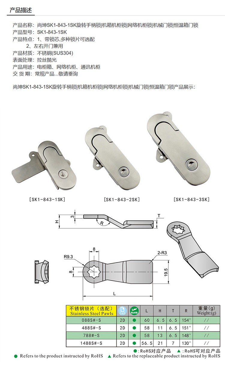 尚坤SK1-843-1SK旋转手柄锁机箱机柜锁网络机柜锁机械门锁恒温箱门锁
