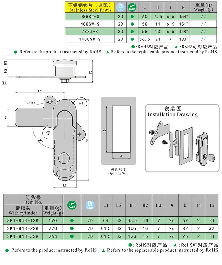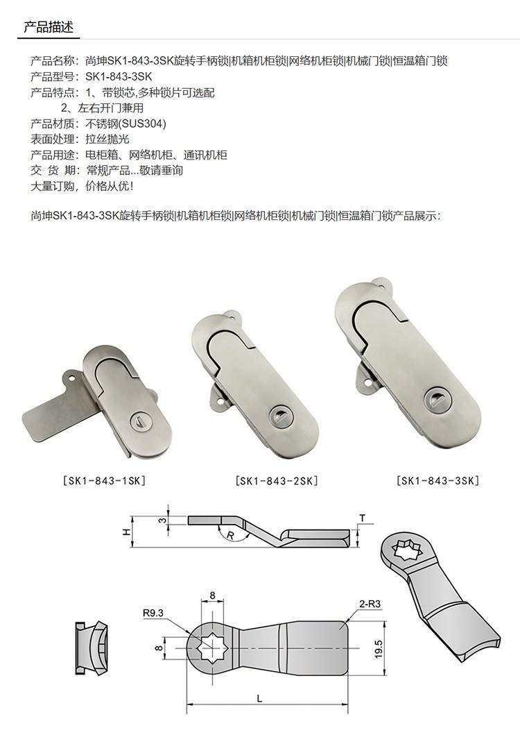 尚坤SK1-843-3SK旋转手柄锁机箱机柜锁网络机柜锁机械门锁恒温箱门锁