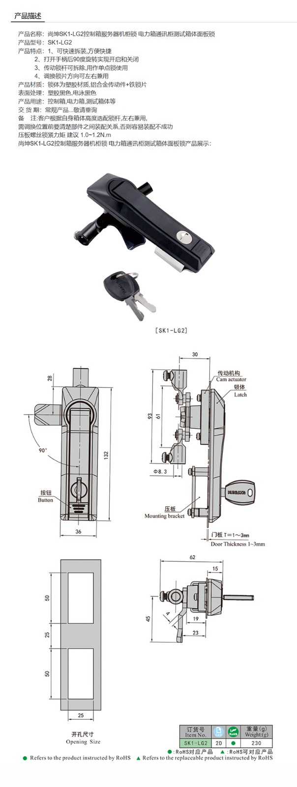 尚坤SK1-LG2控制箱服务器机柜锁 电力箱通讯柜测试箱体面板锁