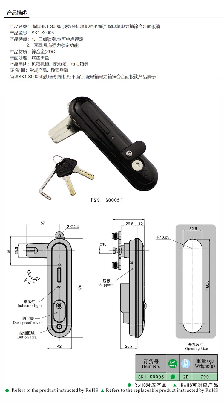 尚坤SK1-S0005服务器机箱机柜平面锁 配电箱电力箱锌合金面板锁