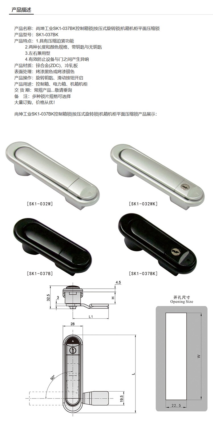尚坤工业SK1-037B控制箱锁按压式旋转锁机箱机柜平面压缩锁
