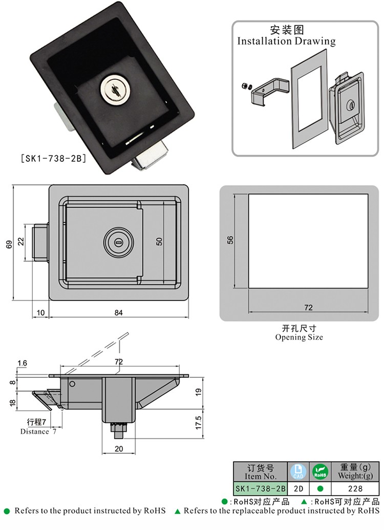 尚坤SK1-738-2B防震机罩锁防尘面板锁静音箱锁改装车锁工程机械锁