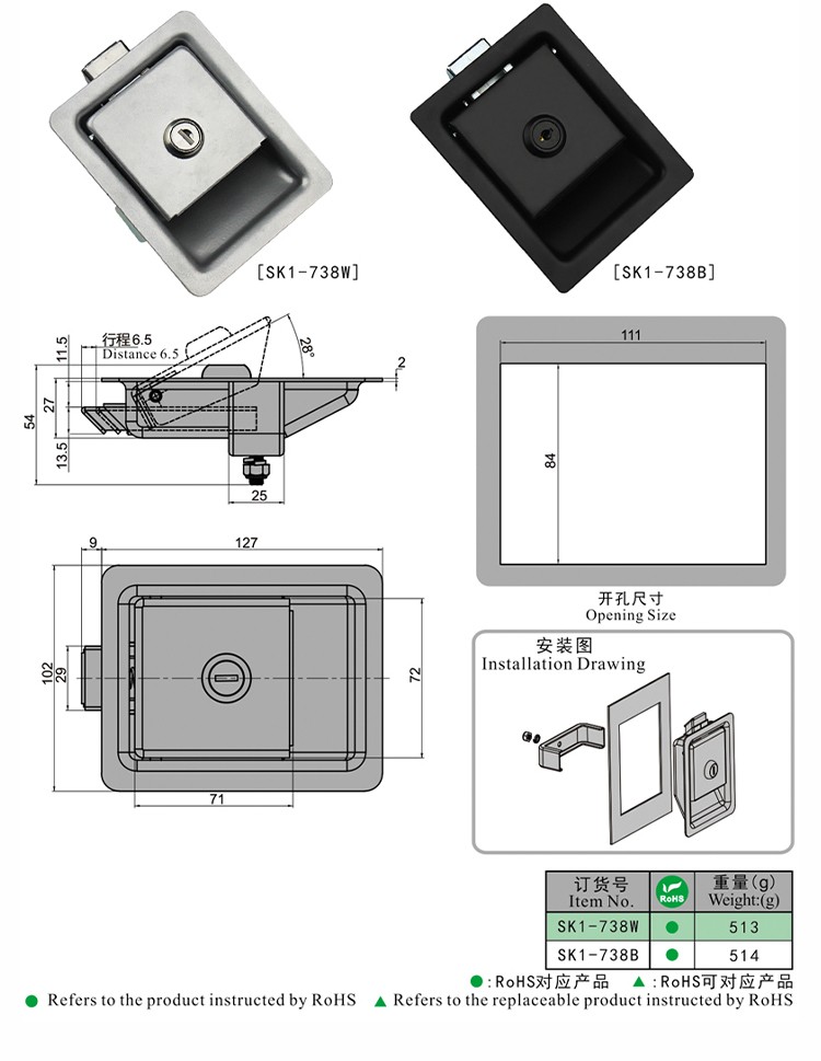 尚坤SK1-738B防尘机罩锁控制面板锁静音箱锁工程机械锁改装车锁