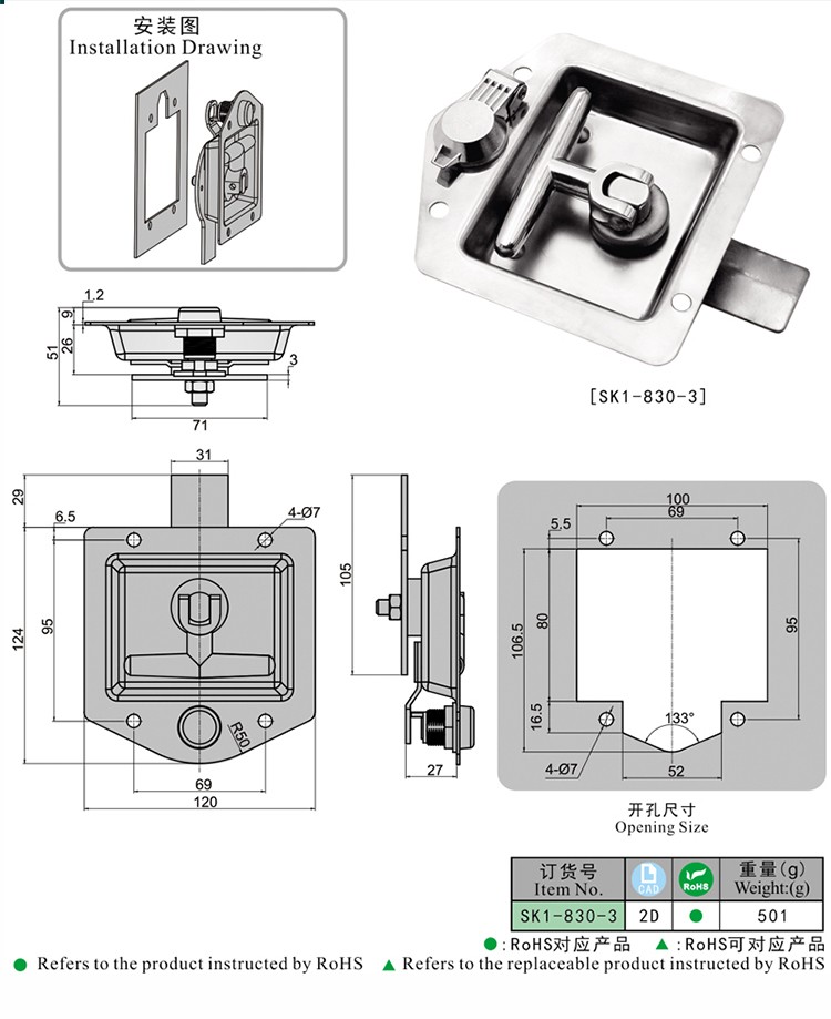 尚坤SK1-830-3不锈钢机罩锁工业面板锁静音箱门锁改装车锁工程机械锁