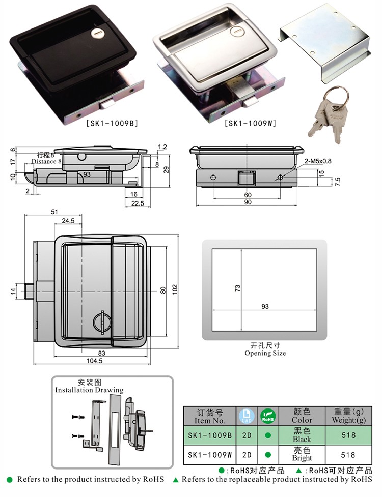 尚坤SK1-1009W锌合金机罩锁控制箱门锁高端防震门锁插销式面板锁特种车辆锁