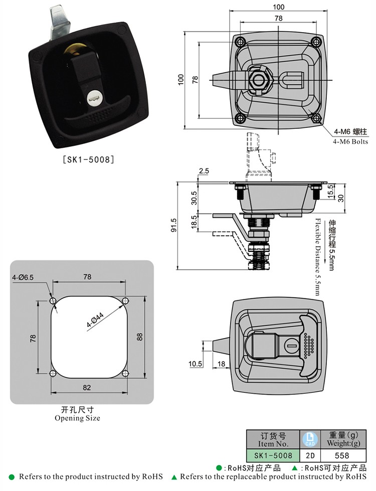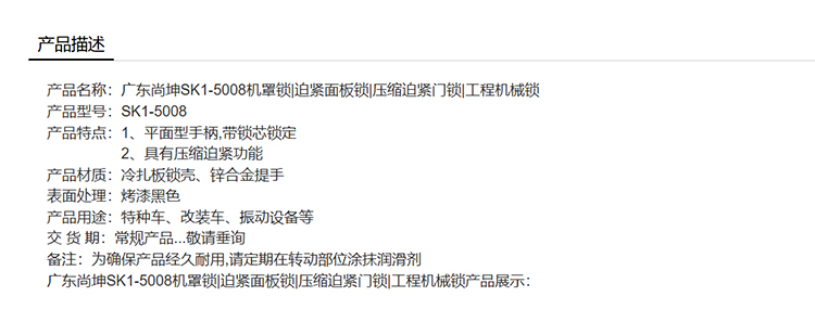 尚坤SK1-5008机罩锁迫紧面板锁压缩迫紧门锁工程机械锁