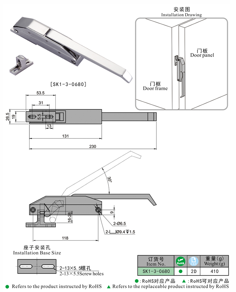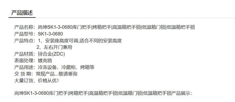 尚坤SK1-3-0680库门把手烤箱把手高温箱把手锁低温箱门锁低温箱把手锁