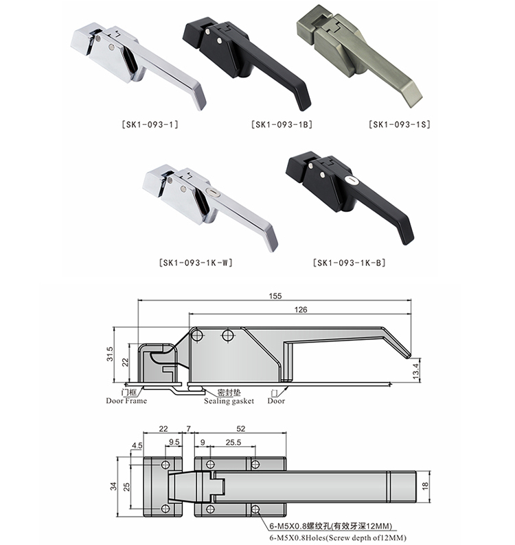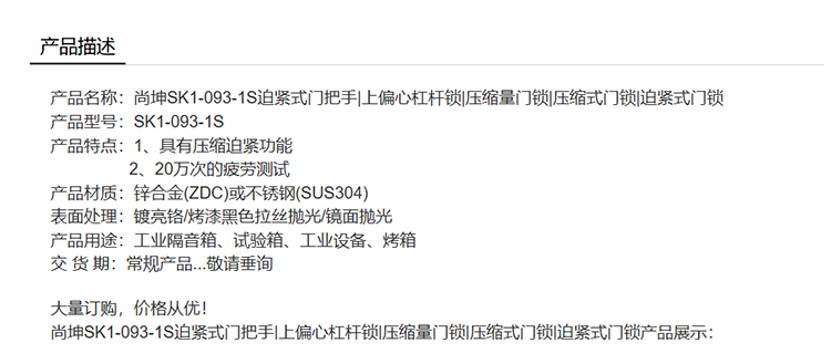 尚坤SK1-093-1S迫紧式门把手上偏心杠杆锁压缩量门锁压缩式门锁迫紧式门锁