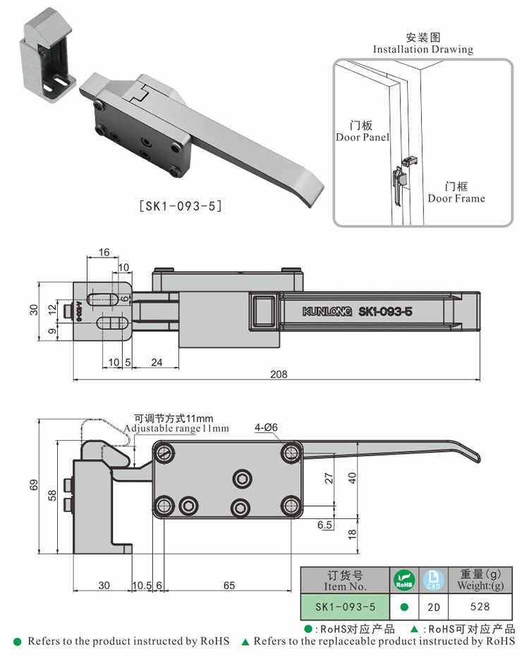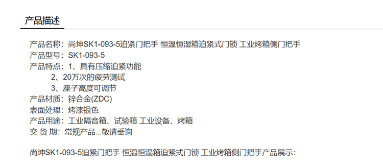 尚坤SK1-093-5迫紧门把手 恒温恒湿箱迫紧式门锁 工业烤箱侧门把手