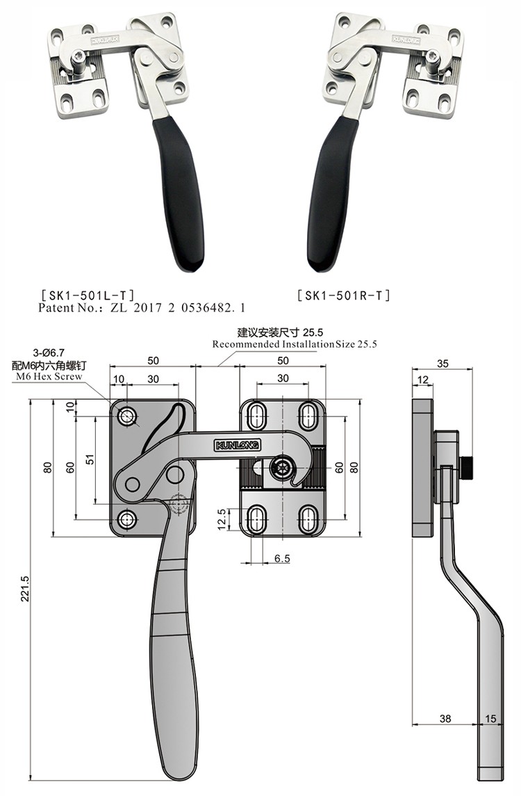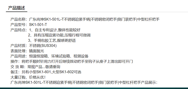 尚坤SK1-501L-T 不锈钢迫紧手柄不锈钢密闭把手侧门装把手中型杠杆把手