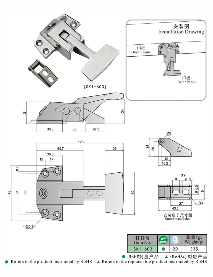 尚坤SK1-603带锁芯把手锁侧门把手烤箱把手试验箱把手锌合金门锁